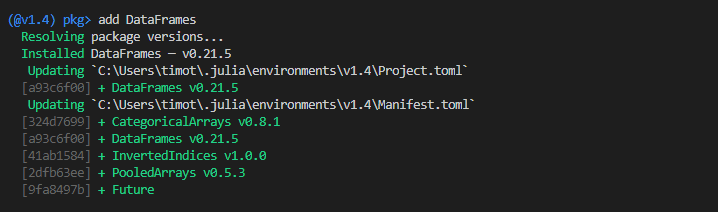 import Pkg; Pkg.add("Revise")to install the Revise package; - Or go into the package manager in the REPL by typing